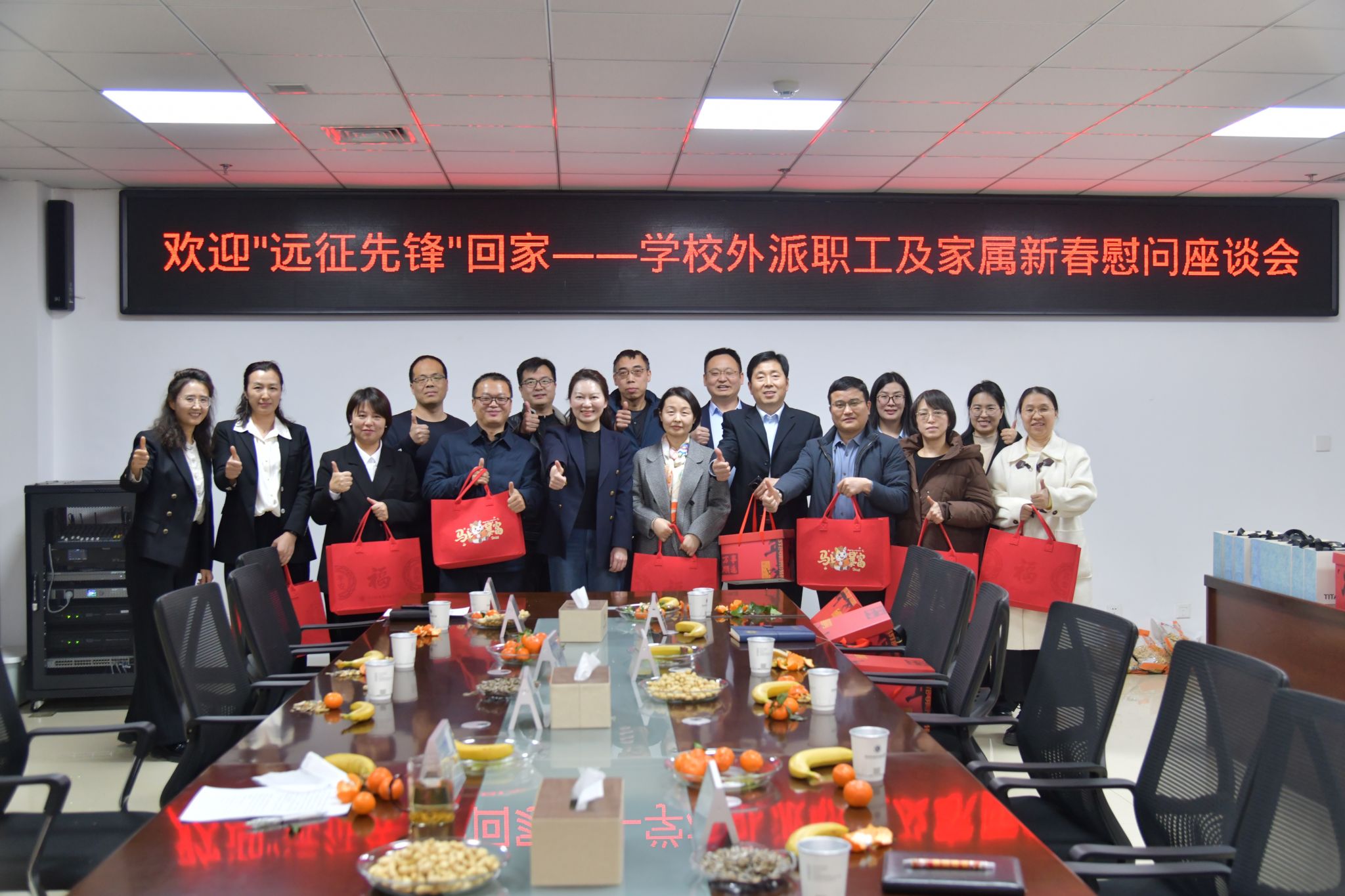 2026年2月11日下午,我校工会在德润楼十层京东方会议室举办“欢迎‘远征先锋’回家”——外派教职工及家属新春慰问座谈会。副校长赵秦与外派教职工及家属欢聚一堂,共话远征历程,共迎马年新春。另有2名同志因坚守岗位未能参会,通过视频连线一并送上祝福。座谈会上,“远征先锋”们分享了各自的奋斗足迹。扎根天山脚下建设专业、点亮边疆学子梦;深耕太行深处修建广场、组织演出、竖起村牌坊;奔走田间地头推销粉条桃子、助力农户增收;...
